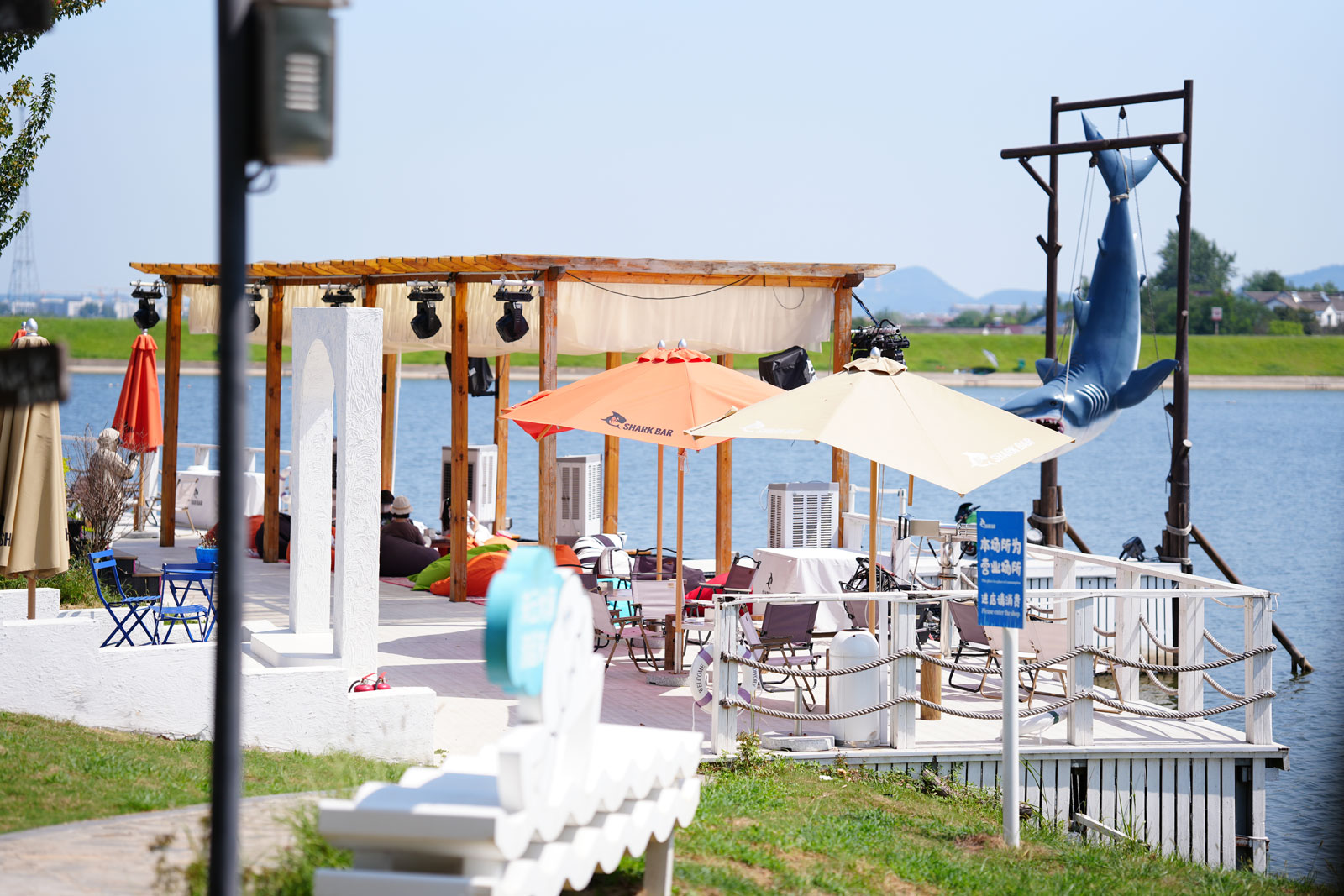 园区休闲娱乐项目丰富多样,兼顾不同年龄段游客需求。水上运动区是水上爱好者的好去处,游客可体验脚踏船、皮划艇、碰碰船等项目,在水面驰骋,感受水上运动的独特乐趣。云水涧的猫,为爱猫人士提供了温馨的交流空间。在这里,游客可以撸猫、喂养,与猫咪亲密互动。同时,猫咖还可承接团建、研学、发布会等项目。 Shark Bar 酒吧特色鲜明,内设鲨鱼打卡装置,提供火锅、简餐、咖啡、烤肉、调酒等餐饮服务,适合四季休闲度假,派对、团建及聚餐等活动。“宽窄院子”,融合中式四合院的古典韵味与热带海岛度假风,是集轰趴团建、美食享受与休闲放松于一体的综合业态集合店,为游客提供多样化的休闲团建空间。花小醉烧烤露营,将美食与休闲相结合,道路两旁设有烧烤亭及不同主题烧烤区域,全天候提供炭火与美食,可根据活动主题和人数预定位置,满足家庭出游、公司团建等就餐需求。时光有轨小火车,轨道长达1.2公里,行驶一圈约17分钟,游客乘坐其间可欣赏园区湖面的如画美景,感受大自然的宁静和谐,重拾童年乐趣。童趣园,专为儿童打造,不仅设有跷跷板、秋千、木马等经典设施,还有户外拓展攀爬、沙坑体验等游戏区域,小朋友可在此探索自然,还能与白兔、孔雀、鸵鸟、羊驼等小动物亲密互动。游园火车,路线长达2.8公里,行驶时间约15分钟,可带领游客环绕园区一周,尽览园区人文与自然交融的全貌。此外,园区还设有11人制标准化天然草足球场,场地长105米,宽68米,可容纳5000人左右。依托高标准天然草足球场的优势条件,云水涧聚焦业态创新,精心构建“演出+培训+赛事”的多元化产品体系,探索文体旅一体化发展新路径。
